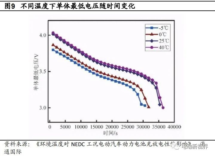 動力電池高效工作溫度區間較窄,熱管理系統是維持電池性能和安全的關鍵。20-35℃是動力電池的高效工作溫度區間,溫度過低導致電池充放電功率性能下降,縮短續航里程;溫度過高 45℃會產生電池熱失控風險,威脅整車安全。