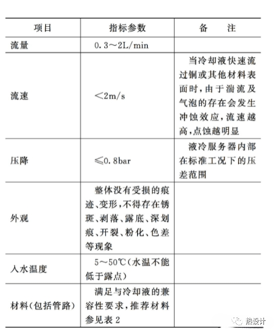 冷板的設計需要考慮可維護性,對于內(nèi)存等易維護部件,建議做到免工具維護冷板的對外管路接頭為快速接頭,不同的液冷系統(tǒng),可選擇盲插接頭和非盲插接頭。冷板指標要求見下圖: