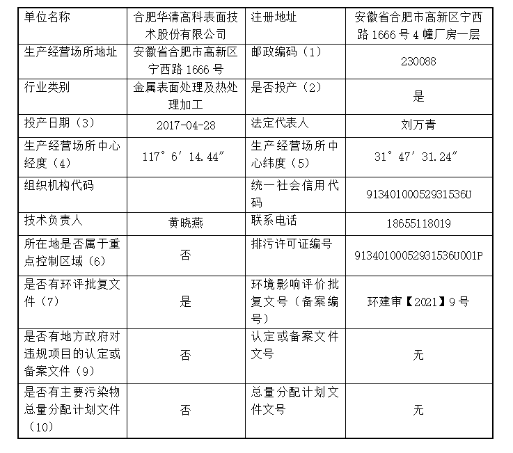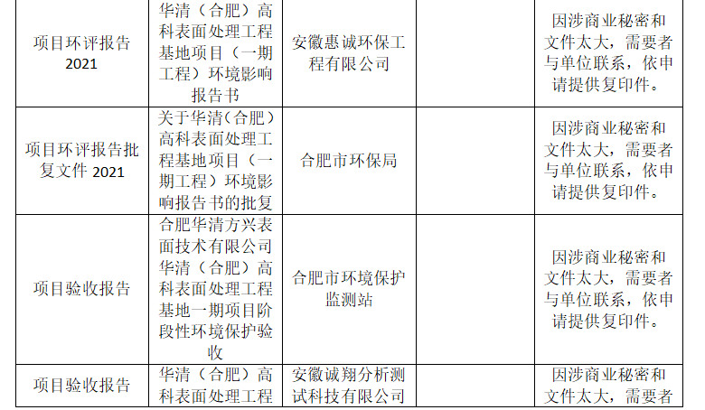 合肥華清高科表面技術(shù)股份有限公司 2022年第四季度信息公開表