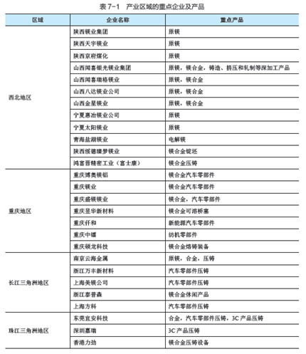 河南地區依托河南省雄厚的輕金屬研發和應用基礎,擁有國家鎂及鎂合金產品質檢中心和中鋁鄭州輕金屬研究院,成立了河南鎂業集團、萬德芙、明鎂科技、地恩地等代表性企業,主要以鎂粉以及部分鑄造和變形深加工為主。