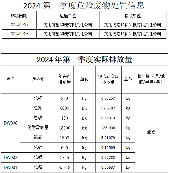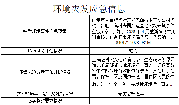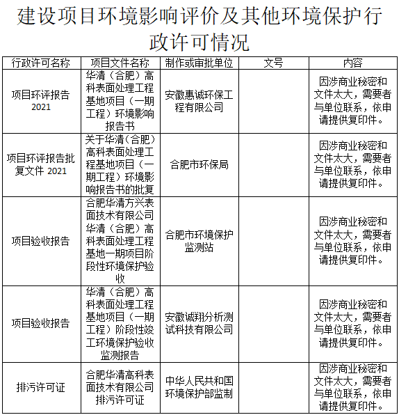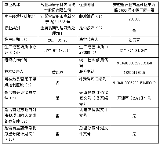 合肥華清高科表面技術股份有限公司 2024年第一季度信息公開表