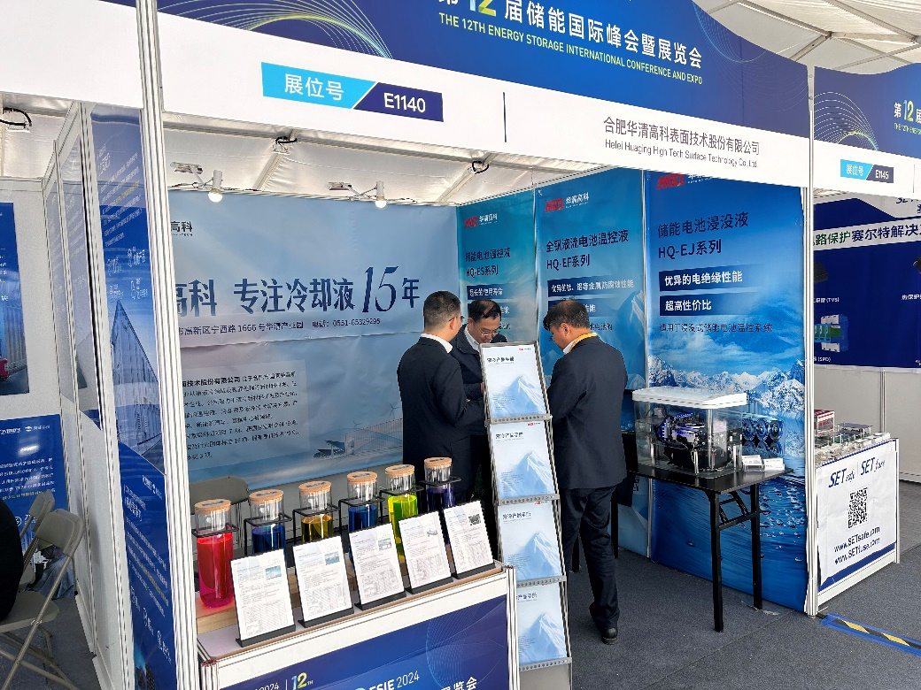 本次展會,華清高科展出有儲能電池溫控液HQ-ES系列、儲能電池浸沒液HQ-EJ系列、全釩液流電池溫控液HQ-EF系列等,吸引了眾多儲能及儲能溫控領域友商駐足。