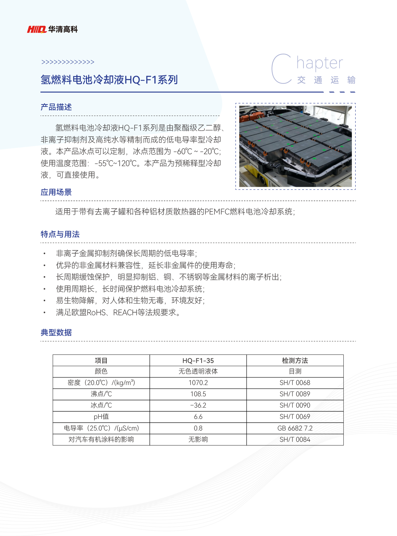 氫燃料電池冷卻液HQ-F1系列產品概述