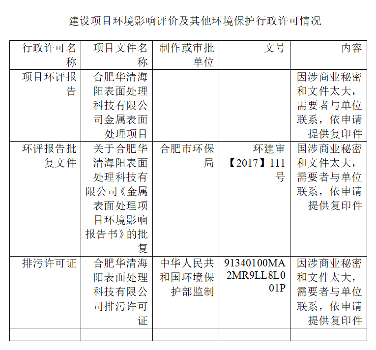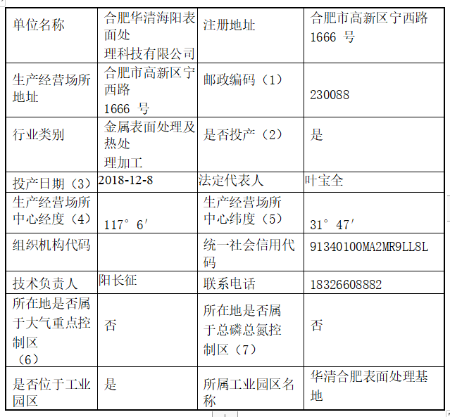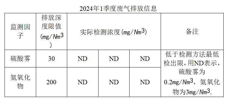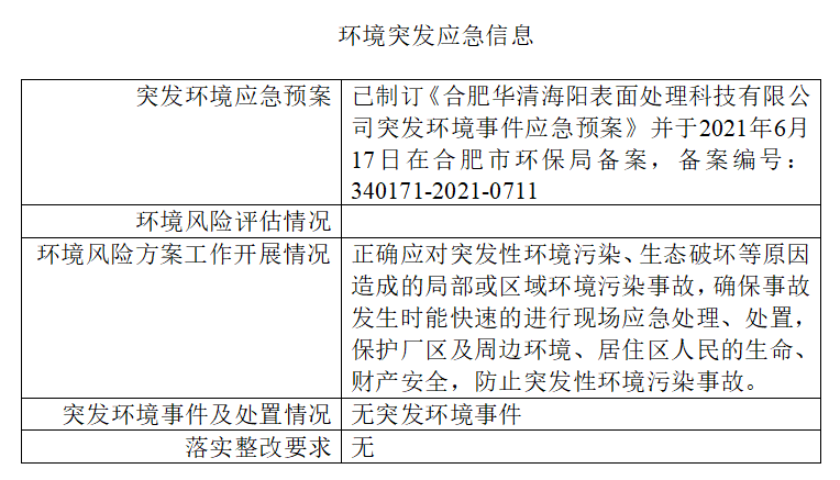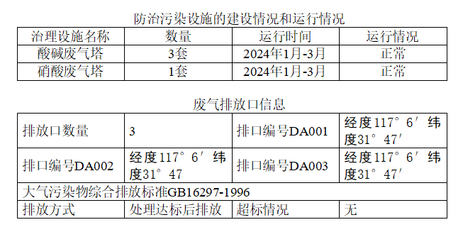 合肥華清海陽表面處理科技有限公司2024年第1季度信息公開表