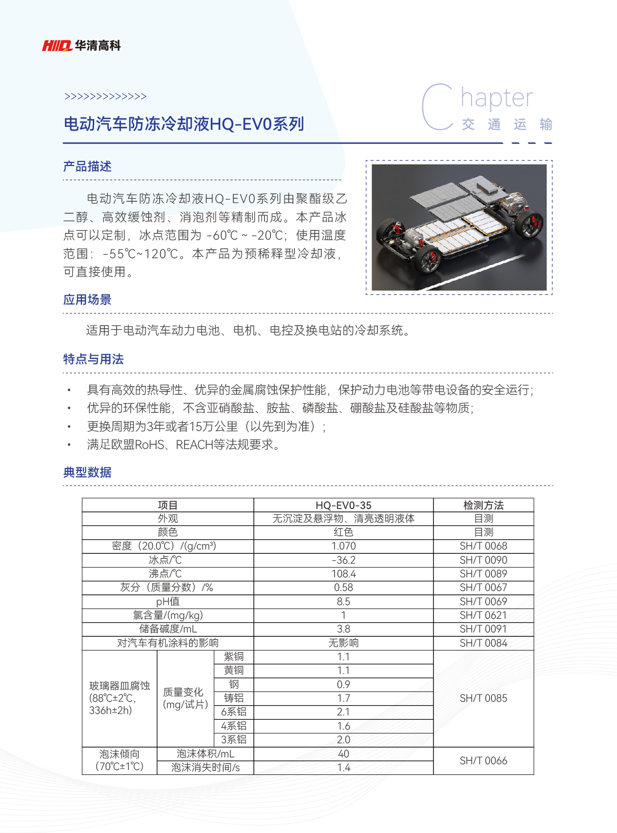 電動汽車防凍冷卻液HQ-EV系列產品概述
