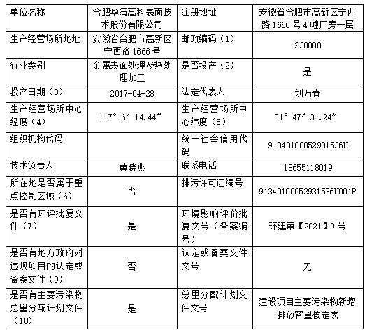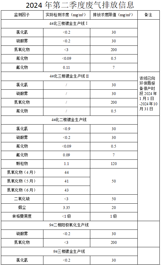 合肥華清海陽表面處理科技有限公司2024年第2季度信息公開表
