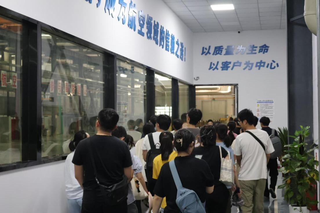隨后,董事長帶領學生們參觀了鎂合金表面處理生產線和航空航天表面處理生產線。在這里,同學們對新質生產力及表面處理技術的先進性有了更直觀的認識。