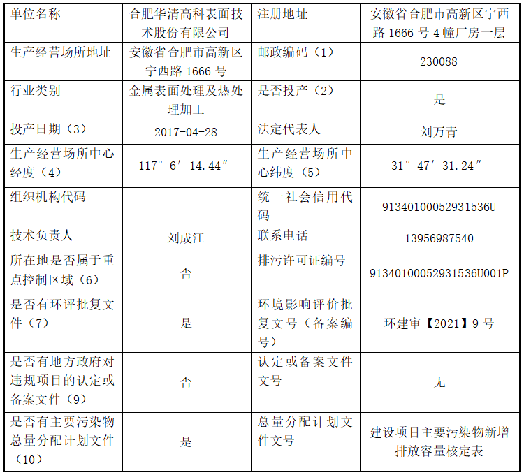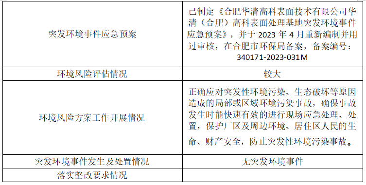 合肥華清高科表面技術股份有限公司 2024年第三季度信息公開表