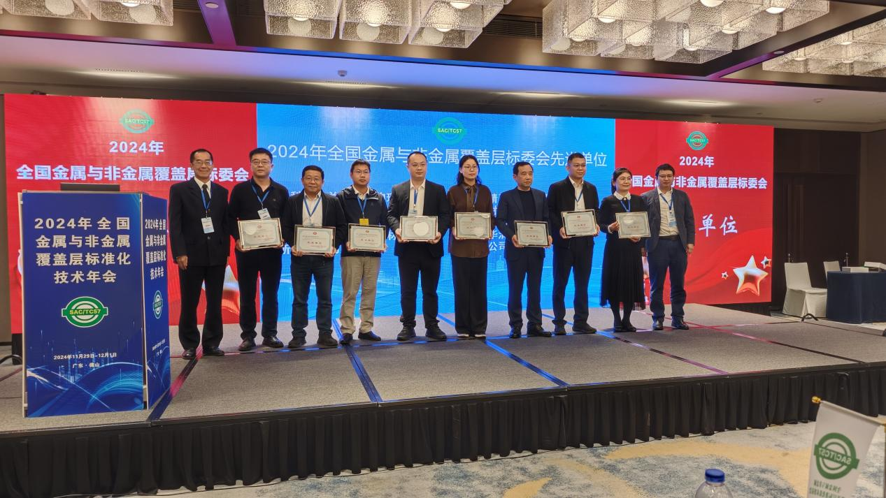 年會現場表彰會中,中國科學院蘭州化學物理所、中國科學金屬材料研究所、中國機械總院集團武漢材料保護研究所有限公司、航天精工股份有限公司、航天材料及工藝研究所、重慶長安汽車股份有限公司、合肥華清高科表面技術股份有限公司等16家單位獲“全國金屬與非金屬覆蓋層標準化技術委員會2024年度標準化工作先進單位”稱號。